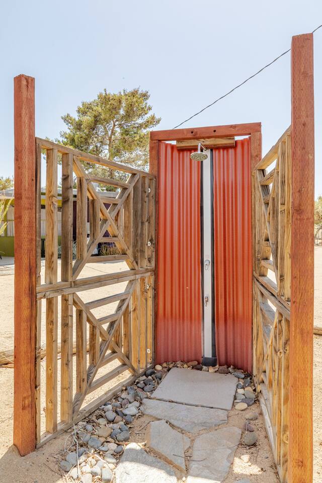 Location, location, location! Feel like you are way off the grid and yet central to everything Joshua Tree, Pioneertown, 29 Palms and Yucca Valley, all areas you'll like to visit. You'll check in when you arrive and check out when you leave by sending a message here, texting or making a call. RENTAL AGREEMENT For county and insurance compliance, the responsible booking person will sign a Rental Agreement. After booking you'll receive a link to complete. I appreciate your time and efforts with this process. GETTING TO MY PLACE You will travel 2 minutes from the Joshua Village, Highway 62 to Sunburst to Dennis which becomes a dirt road (where we all experience our first ahhhh getting off the beaten path) and then to Barbara. All cars are safe on the dirt roads. CLEANING / SANITIZATION Heath, safety and wellbeing of my guests are of utmost importance to me. For this reason, I use a thorough and extensive process of cleaning after each check-out. Self-check-in is also employed to avoid unnecessary person-to-person contact, you'll get check in instructions morning of arrival. SECURITY CAMERAS I have 24/7 video/audio security cameras on the keypad of the entrance door of the property, and covering the front driveway of the property, these are not monitored, used in case of issues. WEATHER When it's Hot bring hats and sunscreen, plan on your outside time being earlier in the day and drink more water than you think you'll need. When it's cold bring layers, altitudes make a difference. SEPTIC SYSTEM JT properties use a Septic System for waste. Nothing goes down the sinks (i.e. food waste, cooking oils, etc. down sinks) only TP down toilet.